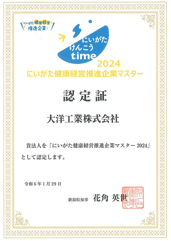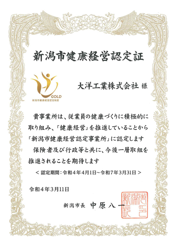 新潟市健康経営認定事業所の認定クラスが「ゴールドクラス」になりました。