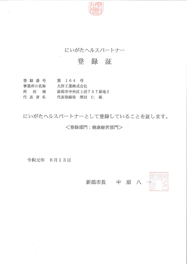 新潟市 にいがたヘルスパートナーに登録されました。